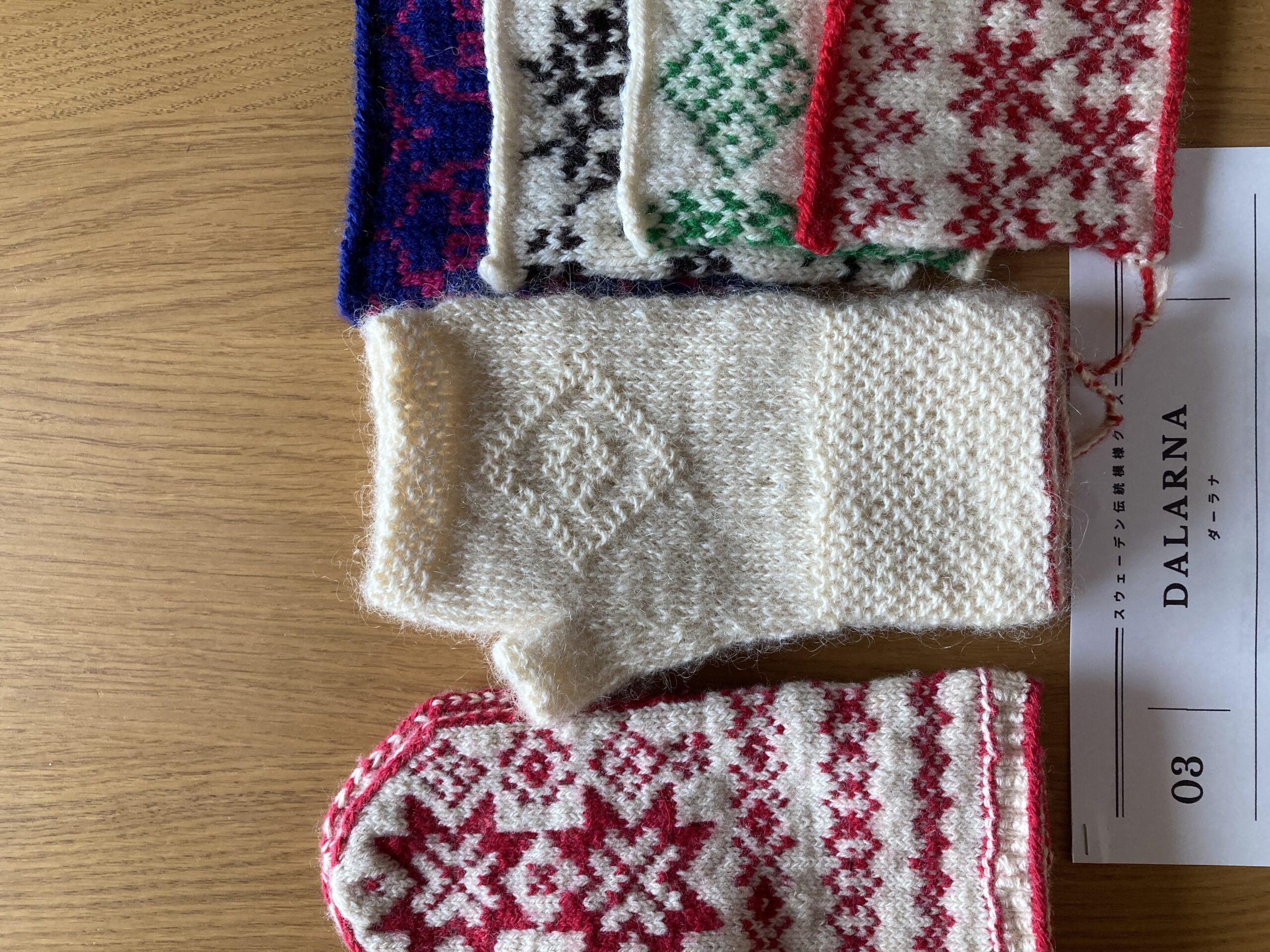 日曜日はスウェーデン伝統模様クラス開催。このクラスは、私が15年ほど前に(もう15年も経ってしまった!)参加したスウェーデンの手工芸学校で学んだ内容をベースに、帰国してから私なりに文献などを調べて作ったクラス。通常のクラスと違って、前半は私がその地域の編み物について説明をして、後半は実際に伝統模様を編んでいただくという内容。ここ数年お休みをしていたのですが、今年また再開しました。