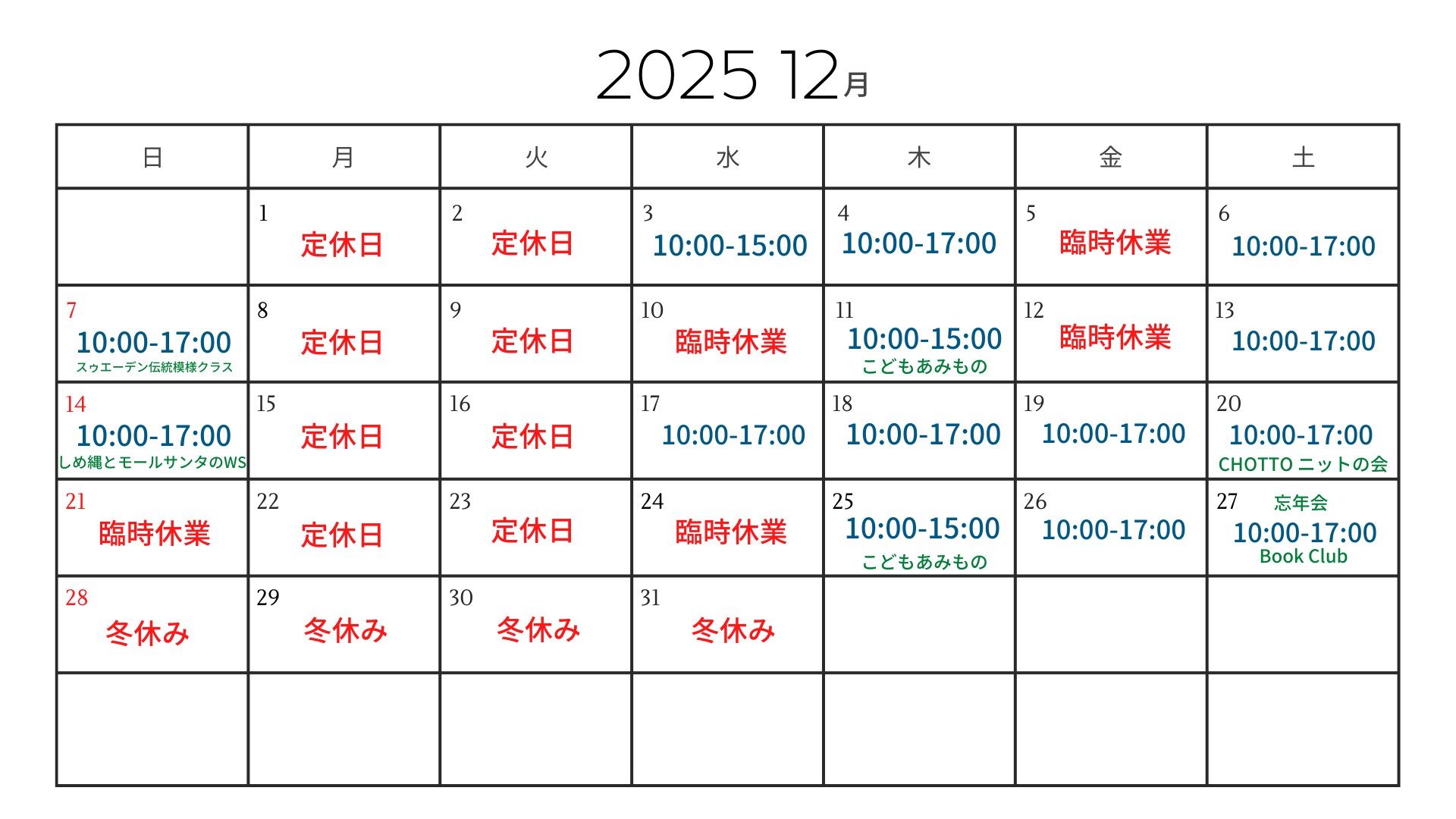 🚩CHOTTOニットの会は12月20日(土)開催です。