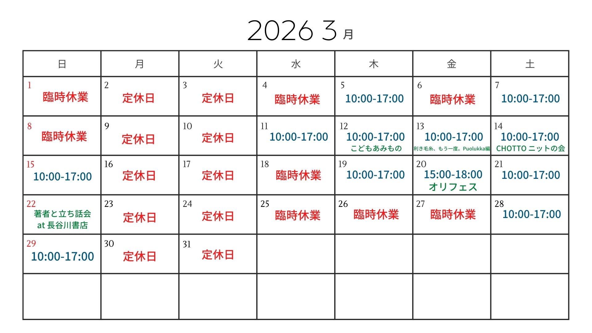🚩3月1日(日)・4日(水)・6日(金)・8日(日)・18日(水)・25日(水)・26日(木)27日(金)臨時休業です。