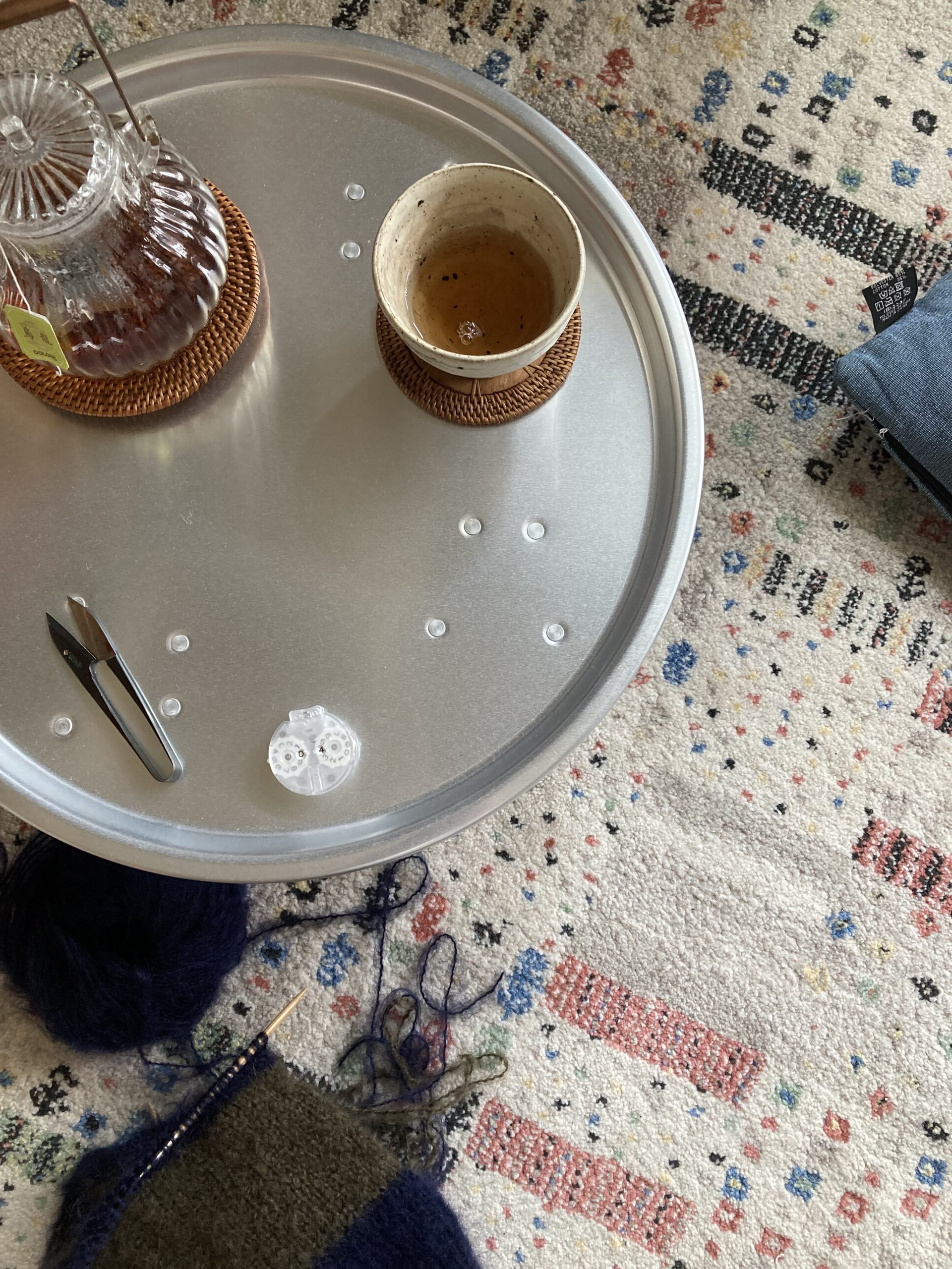私は自宅には自分の部屋がないので、リビングの一角に絨毯をひいてアルミのちゃぶ台を置き(韓流ドラマでもよく見る韓国のもの。これ、軽くてとても便利)、まわりには観葉植物やライト(手元がよく見えるように必須)を設置して、自分コーナーを作っています。この絨毯に座る人は、お母さんの部屋にお邪魔しよ、と言って座ります。勝手に自分の部屋。なかなか落ち着くんですよ。