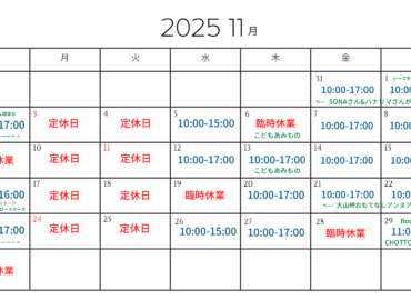 11月の営業日時のお知らせです。 涼しいですね。読書の秋、編み物の秋到来です。 今月もよろしくお願いします。 🚩月曜日・火曜日 定休日です。 🚩11月6日(木)・9日(日)・19日(水)・ […]
