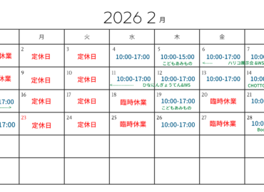 臨時休業日:2月1日(日)・8日(日)・18日(水)・20日(金)・25日(水)・27日(金)