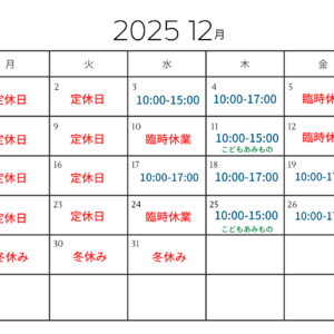 2025年12月の営業日時のお知らせ 2025年11月30日2025年11月30日 puolukka 12月の営業日時のお知らせです。 天王山の景色がとてもきれいな季節です。 今月もよろしくお願いします。 🚩月曜日・火曜日 定休日です。 🚩12月5日(金)・10日(水)・12日(金)・21 […]