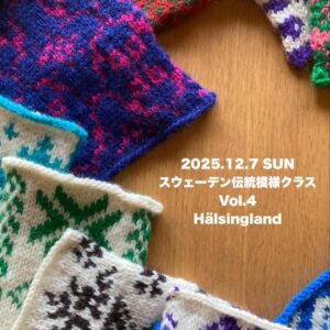 スウェーデン伝統模様クラス Vol.4 Hälsingland(ヘルシングランド) 2025年12月7日(日)10:00-12:00 2025年12月4日2025年12月4日 puolukka スウェーデン伝統模様クラスは全4回のレッスン。第4回目最後の舞台は Hälsingland ヘルシングランドです。この地域はスウェーデンの民族衣装の模様として有名な模様がありますよ。大ぶりなその模様が生まれた理由とは、そ […]