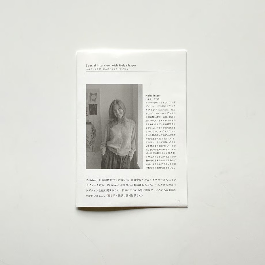 風糸ブックスの出版レーベルとしての第一弾となる、デンマークの人気ニットデザイナーであり、日本でもファンの多い素敵な糸メーカー・Isagerの共同経営者でもあるヘルガ・イサガー(Helga Isager)さんのパターンブック「Stitches」日本語版。特典リーフレットつきでお届けいたします!