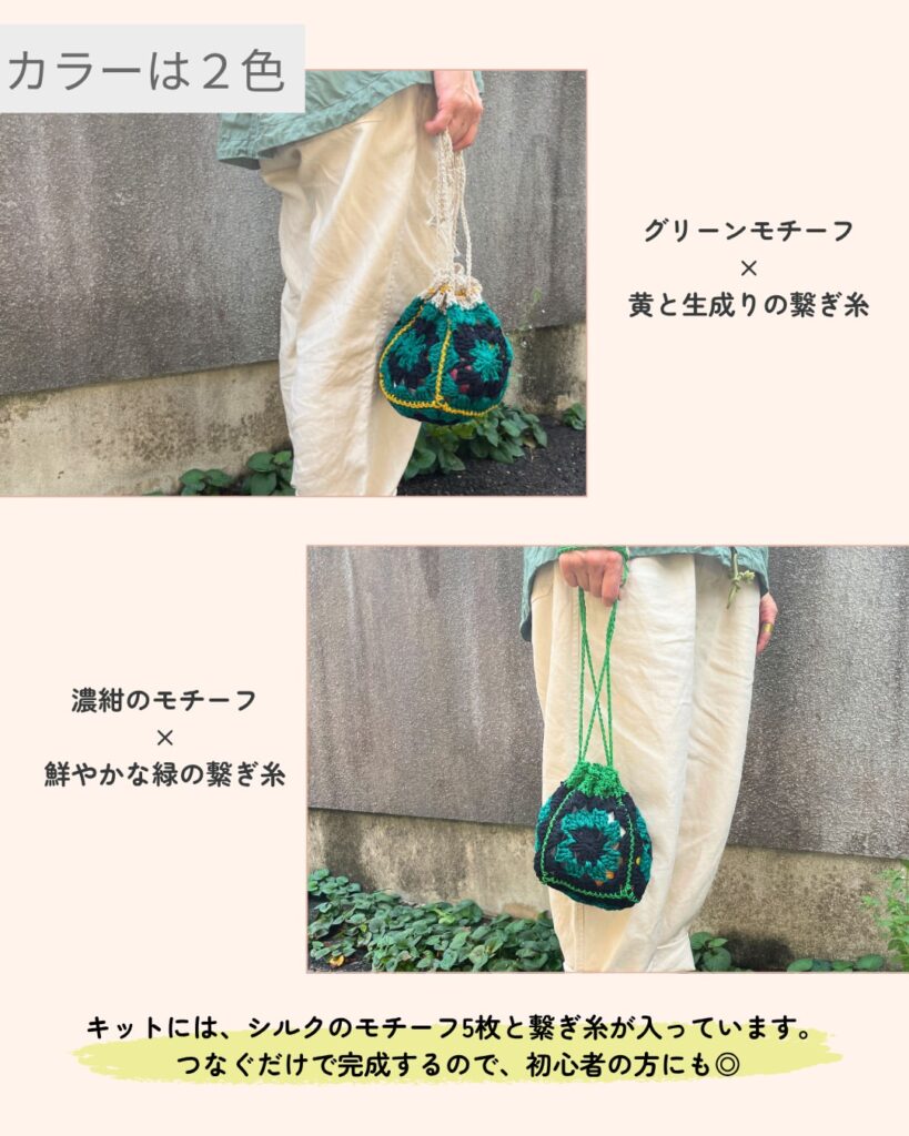 シルクモチーフの巾着 (haleaco)「編み物キット」